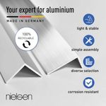 The angle profiles are easy to install and are very resilient due to the high-quality material. The weather-resistant aluminium means that the L-profiles can be used both indoors and outdoors. Despite being light weight, they are very robust, corrosion-resistant and easy to maintain. Aluminium as a raw material can be reused or recycled and thus contributes to sustainability. Choose angle profiles directly from the manufacturer, nielsen - made in Germany.