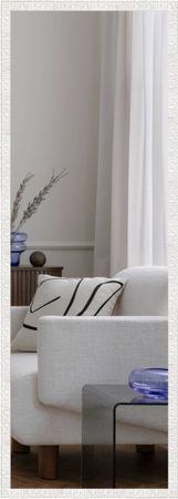 The exact external sizes are 51x71 cm, 51x151 cm and 71x171 cm, with a profile depth of 2 cm. The copper free mirror glass (3 mm) is highly resistant to corrosion and was produced according to DIN EN 1036 (mirror made of silver-coated float glass for indoor use), keeping its timeless aesthetics for years to come. The mirror is supplied with a mounting set, including mounting instructions, hangers, screws, dowels and foam pads for wall protection. Important: The fastening (screws and dowels) must be selected according to the wall structure.