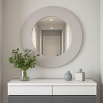 • Sleek minimalist design: Large round wall mirror with a modern 16cm wide grey frame.