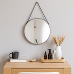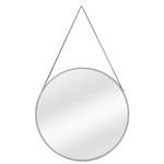 Round Wall Mirror with Leather Hanging Strap Silver