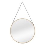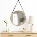 Round Wall Mirror with Leather Hanging Strap Gold