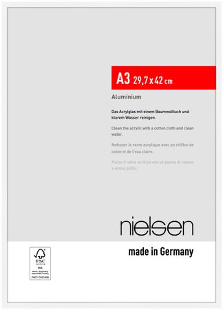The nielsen C2 frame with float glass is FSC®-certified and manufactured in our own production facility in Germany. Featuring high-quality components including a protective glass front to protect your pictures and photos, a strong back panel with push and turn clips (no fiddly tabs), and strong sawtooth hangers allow you to replace and hang pictures quicky and easily. The two hangers on the back panel allow the frames to be hung in portrait or landscape format. This frame can also be used with a picture mount (not included).