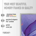 The Classic frames are manufactured in our own production facility in Germany and equipped with high-quality components including a glass front panel to protect your photos, a robust back panel with signature nielsen push and turn clips, and strong sawtooth hangers that allow you to change and hang pictures quickly. The two hangers on the back panel allow the frames to be displayed in portrait or landscape format. The acid-free insert (170 g/m²) can also be used as a barrier paper between your image and the back panel. This frame can also be used with a picture mount (not included).