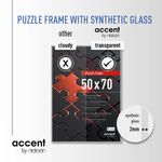 This slim 50x70cm aluminium frame with a 9mm profile creates a clean, modern display that highlights your hard work without distraction. The shatterproof 2 mm synthetic glass keeps your puzzle secure and protected from protected from dust.
