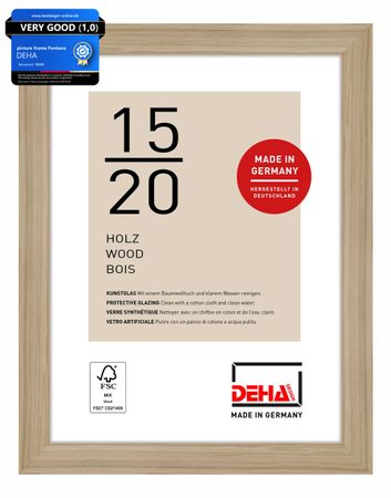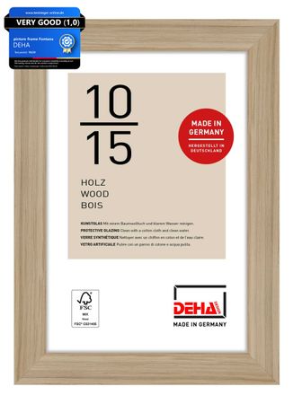 This Scandinavian-style frame comes complete with a 1.4mm white mount that beautifully enhances any picture to ensure your art, photos or prints are displayed to best effect. Crafted in Germany from high-quality materials, these FSC-certified frames have a profile width of 16mm and feature a glass front that reliably protects your photos. The strong MDF back panel features easy-to-use push and turn clips (no fiddly tabs) and strong sawtooth hangers, making it quick easy to insert you pictures and hang on the wall in portrait or landscape format. Frames up to 15x20cm in size include an easel back for tabletop display. The dimensions listed refer to the size of the picture to be framed.
