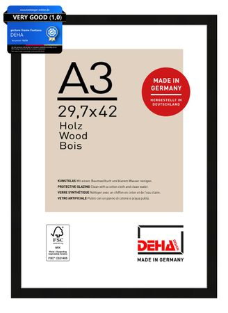 • Wooden picture frame with a classic square profile design - made in Germany.