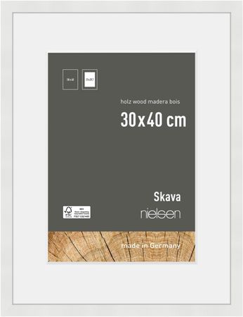 The Skava wood picture frame, by nielsen, stands out with its elegant and minimalist frame design, offering a professional framing finish with a white mount included. Available in 3 colours, black, white and oak, and a wide range of sizes for photograph, print and poster framing.